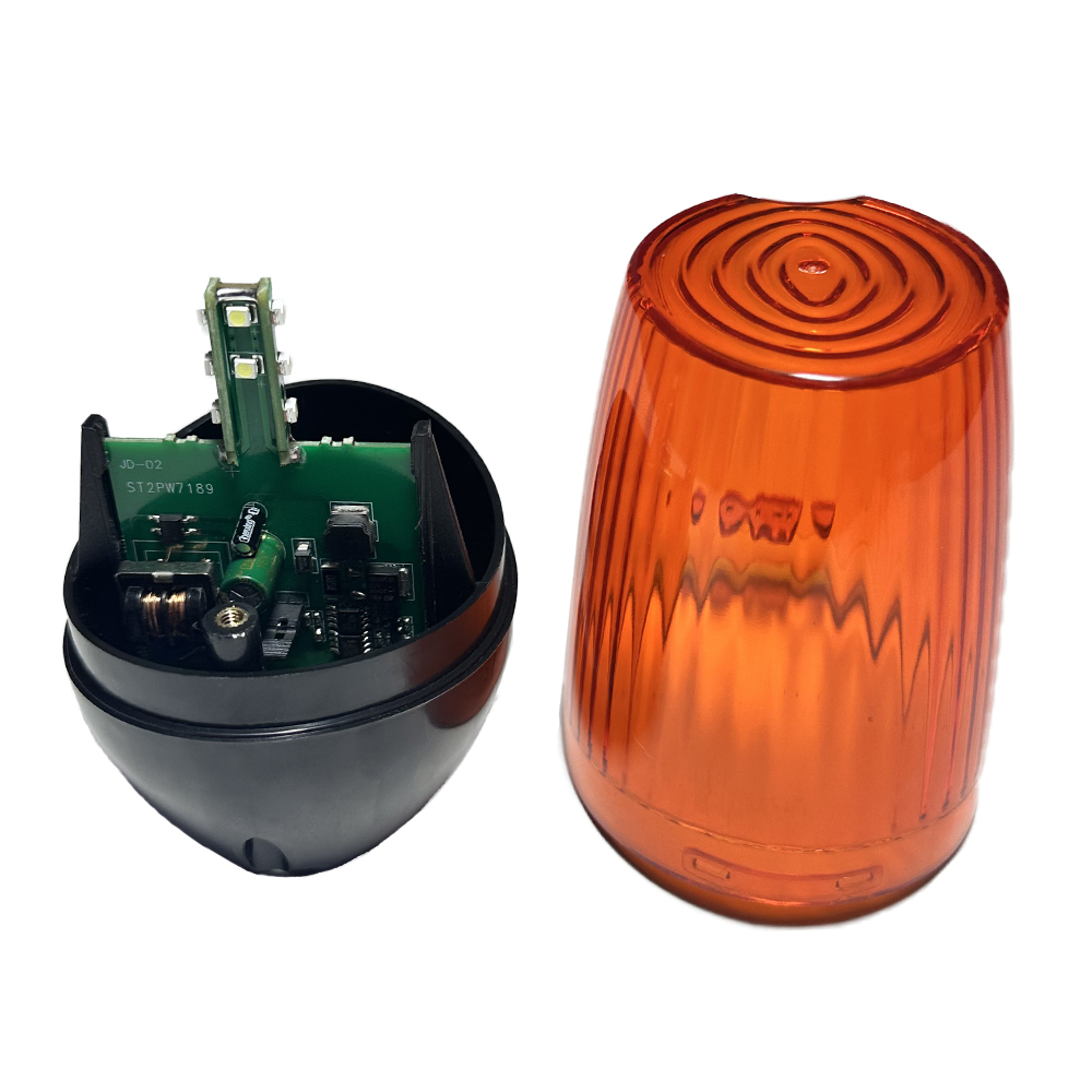 Сигнальная лампа FURNITEH JD-02 для ворот и шлагбаумов. Лампа универсальная, питание 12-220 В. Основная задача сигнальной лампы FURNITEH - уведомить окружающих о начале движения створки ворот, либо же поднятии стрелы шлагбаума. Лампа имеет удобный кронштейн для крепления на столб или другую вертикальную опору.